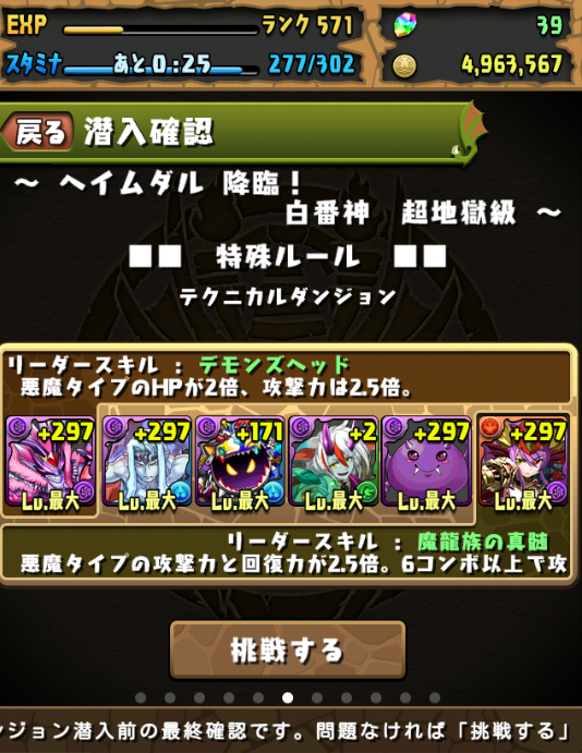 パズドラ日記 新降臨ダンジョン ヘイムダル降臨 超地獄級 をlfオリハルコンで攻略 防御こそ最大の防御 意味不明 の巻 えすたくぶろぐ